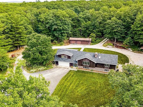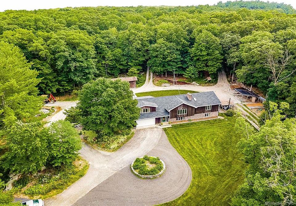 Beautifully secluded and desirably private 5 acre lot in Norwich located just minutes off 395 and route 2. The large circular driveway leads right up to the split level home, which offers 2,852 square feet of living inside. The spacious open floor plan includes 4 bedrooms, and 3 full baths, and central ac and vacuum. Elegant hardwood floors throughout the home and a generously sized family room on the lower level perfect for entertaining with a stove and full slider to the patio. Master bedroom with luxurious en suite that includes double sinks and a jetted bathtub with garden views, his and hers walk in closets, and a private balcony to enjoy your acreage. Enjoy spending quality time in the eat-in kitchen and island, with a slider that takes you out to the deck under the awning or enjoy the sights outside from within. Enjoy cozying up to the fireplace in the living room with great outdoor views and cathedral ceilings. Perfect amount of storage or garage space for enthusiasts with 2 car garage under the house with automatic door openers and a detached 3 bay garage. You can heat the home with a mess free outdoor wood furnace or heat with oil. Roof was just replaced one year ago.