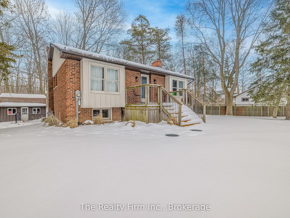 Tucked away on a corner lot (with fenced in backyard) and backing onto a quiet wooded area, this raised brick bungalow offers the perfect mix of privacy, space, and modern comfort. The bright, open-concept kitchen, dining, and living area is filled with natural light and features a beautifully updated kitchen with island, stainless steel appliances, and plenty of storage. New flooring and lighting throughout add a fresh, cohesive look.The main level includes a spacious primary bedroom, a crisp 4-pc bath, and convenient main-floor laundry with an additional 2-pc bath. Downstairs, the walk-out basement expands your living space with a large rec room, an extra bedroom, and direct access to a covered patio (availability to put in a natural gas fireplace). Outside, enjoy multiple outdoor living options including a generous deck and a welcoming front porch-ideal for relaxing or entertaining.Recent updates include a kitchen renovation, new flooring, trim, paint, a drilled well (2024) ... plus the metal roof adds long-term peace of mind. A versatile shed/workshop provides extra storage or space for hobbies. Located just 5 minutes from Tillsonburg, this property delivers country privacy without giving up everyday convenience.