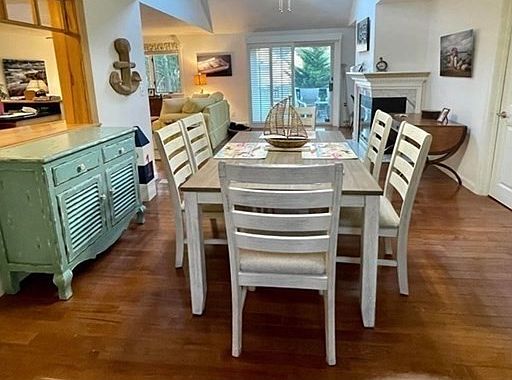 Beautifully appointed 2 bedroom 2.5 bath Nantucket style two-floor condominium with partially finished basement located in Southport, a 55 and over community on Cape Cod. Townhouse style but includes a first floor main bedroom. Main bedroom has a large walk-in closet, private bath and room for a seating area. First floor has Nutmeg stained Hickory hardwood floors. Open living room and dining area with gas fireplace and cathedral ceiling. Sliding glass doors with custom shutters leads out onto a large back deck. Kitchen has Natural Hickory Cabinets. The open floor plan wall between kitchen and living room creating a bar space is also trimmed in Hickory. Vermont soapstone countertops with stainless steel appliances refrigerator, dishwasher, stove and microwave. Breakfast bar off kitchen with seating area. Full sized dining room. 2022 New White Vanities, sinks, faucets, easy close drawers and mirrors in all bathrooms, freshly painted. Upstairs which includes a brand new Chair Master or could be removed. One full bedroom has an x-large closet and private bath. The room in the middle has two skylights and is being used as an office. Extra Large Front Loading Washer and Dryer.