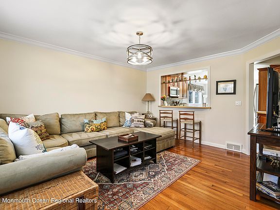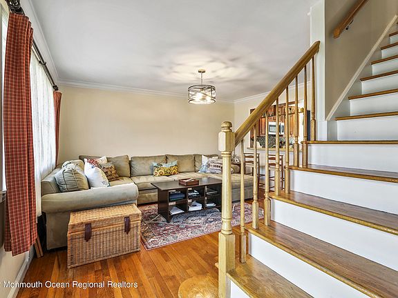 This Expanded 3 bed/3 bath cape on a dead end street is not to be missed. Living room with hardwood floors and crown moldings. Updated eat in kitchen, with sliders to your tranquil backyard. First floor bedroom and a full bath. Generous size dining room perfect for family gatherings. Large masterbedrom with Gleaming hardwood floors. Updated modern bath with sliding barn door. The basement is an entertainers delight Family room with Electric fireplace and TV. Extra room in the basement, with a full bath. Room for a home office too. Super cool wine room that has wood ceilings, stone walls & built in table & bench for enjoying your favorite wines. Fantastic entertaining space. Yard features a hot tub, beautiful gardens & outdoor shower. Close to Red Bank, Beaches, & NYC Transportation.