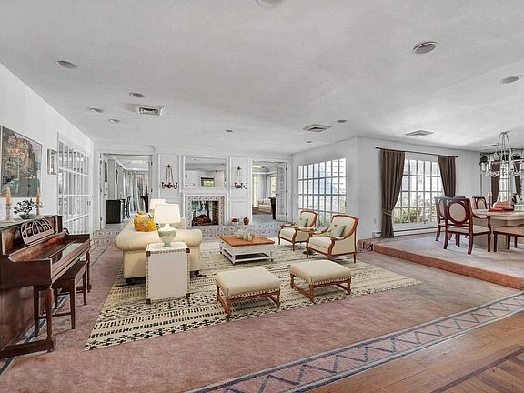 Exceptionally Elegant and Expansive Home in Ellenville! Picturesquely situated on a double parcel, this enormous 5BR/3.5BA, 4,590 sqft ranch is reminiscent of mid-century modern style! Discover a chic interior, boasting a unique chandelier, posh multi-hued hardwood flooring, and neutral paint tones! Envision entertaining in the eat-in kitchen, which has stainless steel appliances, ample wood cabinetry, center island w/seating, recessed lighting, and a wall of storage cabinets! Relax in living room or play pool and have drinks in the dedicated entertainment room! Grill outdoors on the sprawling deck and unwind by the firepit! Experience serenity in the huge master bedroom, featuring walk-in closets and a full en suite w/Roman style shower, dual sinks, and a tranquil soaking tub! Other features: 2-car attached garage, wet bar, sunroom w/skylights, central A/C, flex space for gym/playroom/etc., keep 2nd parcel or sell for new build/potential profit, and more! Call now for a private tour!