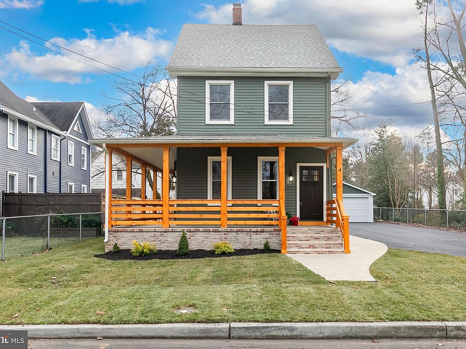 TOTAL TRANSFORMATION! This lovely 4 bedroom, 2 FULL bath home located just off of historic Main Street in desirable Lumberton is a real stunner! You will be impressed the moment you drive up and park in the new asphalt driveway right in front of the DETACHED 2 car garage with new roof and remote door! You will be so impressed walking up to the gorgeous, quaint covered wrap-around front porch with quality woodwork and curb appeal galore! The main great room is an Entertainer's dream with brand new large, open kitchen featuring: raised panel white cabinetry w/soft close drawers, granite countertops, undermount sink, peninsula island/breakfast bar, pendant lights, recessed lighting, BRAND-NEW Stainless-Steel Appliances, decorative tile backsplash. Convenient Main Floor FULL bath. Formal Living Room. Main Floor Laundry. 3 nicely sized bedrooms on the 2nd Floor feature new carpeting, ceiling fans + new mini-splits. Spalike upstairs full bathroom is roomy with new tub & decorative tile tub surround, ceramic tile floors, new toilet, new double vanity, recessed lighting. Walk up to the 3rd Floor bedroom which offers loads of other possibilities: office, teen suite, etc. Newer roof, heater. NEW mini-splits/AC throughout the house. NEW hot water heater. Cute paver patio off the back overlooking the level, clear, LARGE backyard, complete with new sod. Close to major roads, schools, Joint Base MDL. Great opportunity to enter Lumberton Township at an affordable price point!