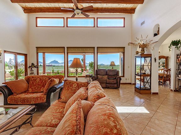 ENERGY EFFICIENT HOME! Extra foam insulation, pre-wire for solar, Anderson windows, split floor plan; guest Br w/on suite; butler's pantry w/full kitchen/utility room; Spacious Master Br w/ Lg walk in closet, walk in shower, jetted tub, separate vanities. Beautifully designed chef's kitchen w/granite counters, Island, Alder wood doors, Dining room; 14' ceiling in Great room w/beautiful fire place, surround sound, Lg windows; Two HVAC systems. Office/Den, Central flower / herb garden w/outdoor living space, 2 car garage w/work shop. Panoramic views of surrounding mountains! Separate 300 sqft guest house w/ loft; 5 of the acres totally fenced w/ fruit trees and flowers; Deluxe chicken coop w/nesting box & run; 10 adjacent acres for AG/horse, privacy, etc.
