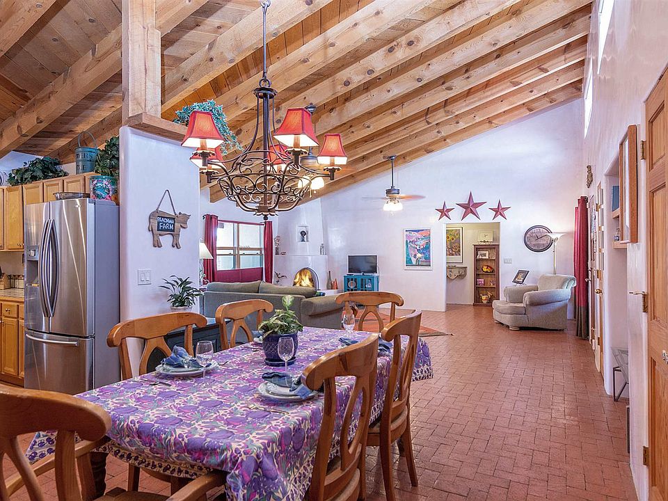 Truly an impressive custom-built property, re-stuccoed w/elastomeric in March 2018, offers open wide spaces in a country like setting yet minutes to in-town conveniences such as shopping, restaurants, schools, & close to the Community College. The main house features vaulted, beam ceilings with clerestory windows bringing in wonderful natural light, smooth plaster walls & brick floors with radiant in-floor heat & evaporative cooling, kiva fireplace, beautiful kitchen with Talavera Tile countertops, & stainless steel appliances.The dining & living area is an open concept with a french door that opens to the tranquil back patio closed in by adobe walls & landscaped with flagstone, river rock, synthetic grass, a pergola, a beautiful shade tree, a cherry tree, an apricot tree, & room for your garden! The master bedroom has a French door that leads to this wonderful back patio, its own master bath with Talavera Tile, & a Jack and Jill bathroom shared by the 2nd and 3rd bedrooms,. In addition, there is a bonus room that could be used as a den/family room, office, or perfect for your visiting guests as it offers privacy from the main home & includes a cozy ¾ bath! The guesthouse is a darling 1 bedroom with open concept kitchen/living area and a sweet, intimate covered patio with flagstone just off the bedroom. If this isn't enough to steal your heart, for the horse lovers, there is a horse facility that currently houses 1 horse. A remarkable property! Schedule your showing today.