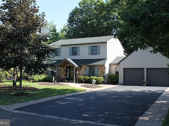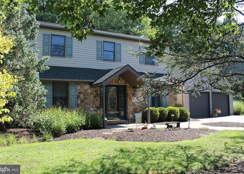 Welcome to Stonebridge Community located just 15 minutes from Doylestown. This 5 bedroom home has so much to offer ~ almost 2800 square feet of living space! As you enter the home the Living Room is to the right and to the left is the oversize kitchen, tons of cabinets and counterspace ~ a cooks dream! Off the kitchen is a breakfast bar area that opens to the Great Room. The great room has a beautiful Stone Fireplace and sliders to the flagstone patio. This amazing open floor plan is spacious and makes it great for entertaining. There is a front and back staircase that leads to the upper level. Upstairs are five large bedrooms with lots of closets, the master bedroom en-suite and a hall bath too! The laundry room is located on the lower level along with a powder room. Attached is an oversize two car garage. The back yard backs up woodland making it a nature lovers retreat. This home is serviced by two Heat Pumps!