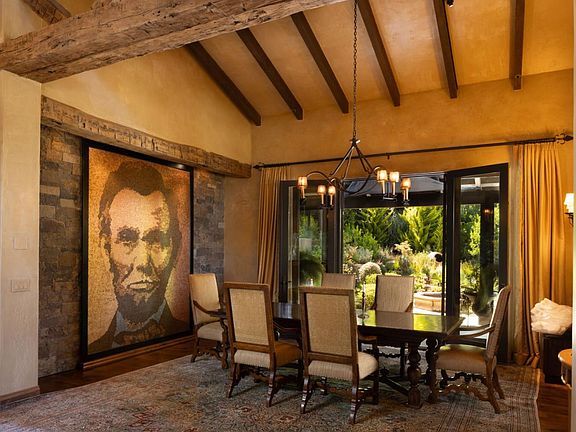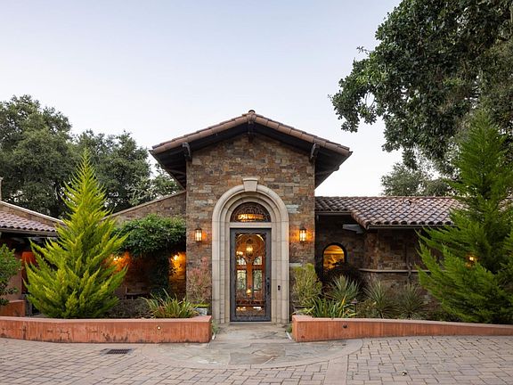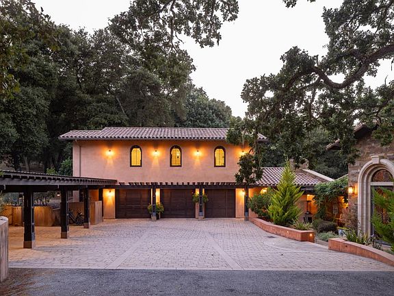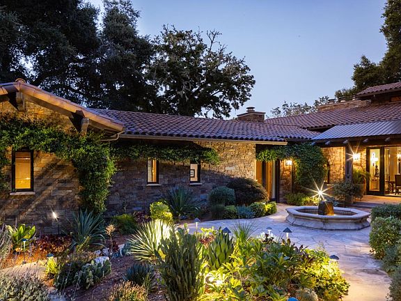 Located behind the secure gates of Santa Lucia Preserve, close to the Ranch Club, lies an old-world hacienda built with incredible materials sourced from all over the world. Crafted with repurposed beams from an 1800's New England farmhouse, vaulted ceilings soar above Colorado stone accents and milled Alderwood floors, and French doors throughout frame views of hillsides, valleys and meadows. This extraordinary property boasts a 3-bedroom, 3.5 bath main house, spacious kitchen with large island, dining bar and pantry ideal for culinary enthusiasts. A formal dining room adjoins the grand living room where a statement fireplace anchors the space, and the primary bedroom suite offers a relaxing seating area, fireplace and luxurious bath with soaking tub, outdoor-access stall shower and expansive walk-in closet. Multiple outdoor patios areas invite alfresco dining, relaxation and entertaining by the serene fountain or outdoor fireplace. The three-car garage has a fully appointed guest unit above which provides 2 additional bedrooms, full bath, and kitchen. With close proximity to the Ranch Club amenities that include the pool, tennis courts, fitness and equestrian centers, this home offers a lifestyle where you can embrace outdoor living, social activities and closeness to nature.