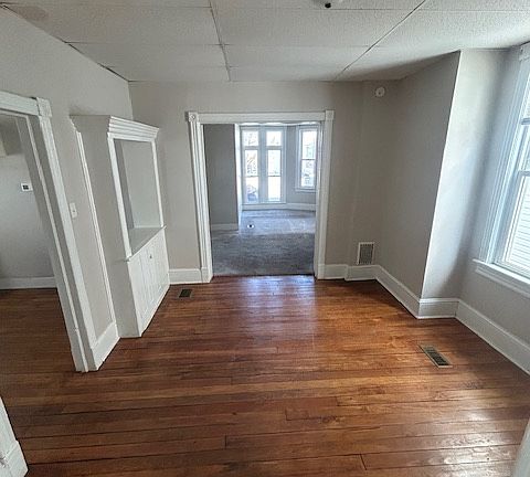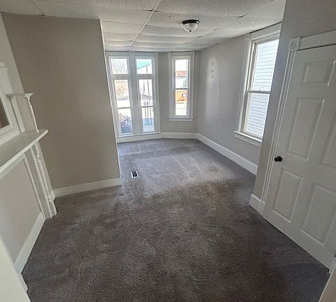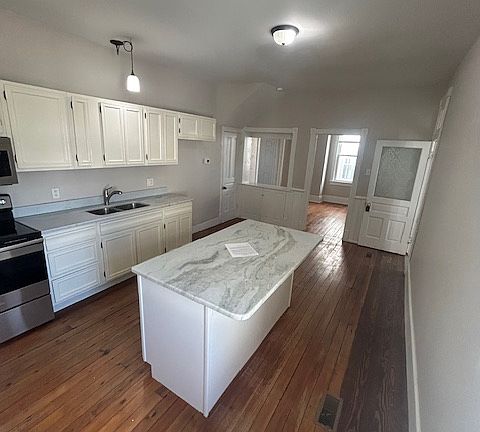 1st fl (there are steps to get into building) - living room - kitchen with stove and center island - tenant will need to get their own refrigerator - shared laundry in the building - Central air - off street parking - $925/mth plus gas and electric. Water, sewer and trash are included. No smoking unit - tenants share responsibility for yard upkeep and snow removal