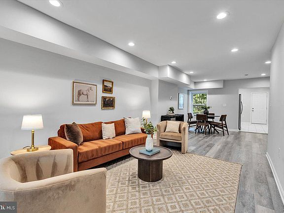 This beautifully renovated porch-front home offers modern comfort with its spacious open floor plan on the main level. A huge living room flows seamlessly into the dining area, perfect for entertaining. The gourmet kitchen is a chef's dream, featuring quartz countertops, stylish tile flooring, all-new stainless steel appliances, and brushed nickel hardware for a sleek, contemporary feel. Luxury vinyl plank flooring is carried throughout the home, adding both elegance and durability. Upstairs, you'll find three generously sized bedrooms and a full bath, while the fully finished lower level provides a fourth bedroom and an additional full bath, perfect for guests or a home office. The fenced rear yard offers privacy and outdoor space for relaxation or play.