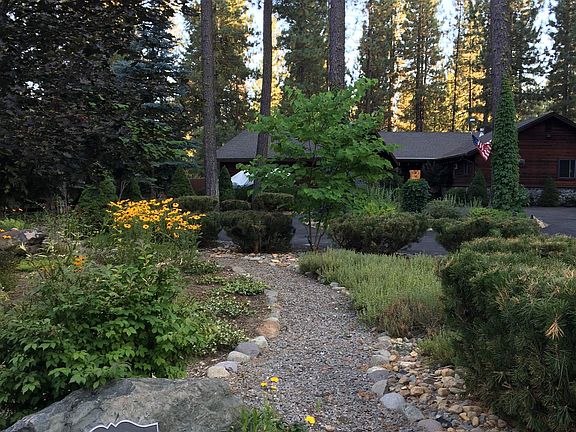 This custom Plumas Eureka Estates home, nestled within the very sought-after neighborhood of Plumas Pines, offers luxury living in the mountains. This stunning 3-bedroom 2-bathroom home custom built on .56 acres, beautifully landscaped, backs up to a seasonal creek and is minutes away from the Plumas Pines Golf Course. Entertain in the large gourmet kitchen which features granite countertops, Jenn Air oven/microwave/warming drawer, Jenn Air gas six burner stove/grill, new Bosch dishwasher, reverse osmosis system, large pantry. Relax inside with luxury vinyl flooring, newer plush living room carpeting, tile flooring in both updated bathrooms. Make every day a spa day in the custom built Finlandia sauna/steam room or soak in the freestanding tub in the primary bathroom. Sit on the hearth of the living room gas fireplace with remote control starter/thermostat. Enjoy smart home features such as the Nest Thermostat, CAT 6 network wiring, fiber optic high-speed internet, and Kwikset keyless entry. Step out back onto the large deck and take in the views of the extraordinary landscaping. Take a dip in the hot tub, entertain and relax in the private and large fenced in yard. Listen to the seasonal creek that rushes in the spring and early summer. Enjoy the large workshop/shed with power for extra storage. Other great features: 6 ceiling fans, whole house fan, entry storm door. Oversized 2 car garage, 40-year roof replaced in 2006, paver sidewalks out back, slate front entrance, large circle driveway. This home has so much to offer, schedule your tour today!
