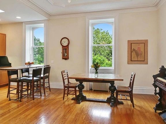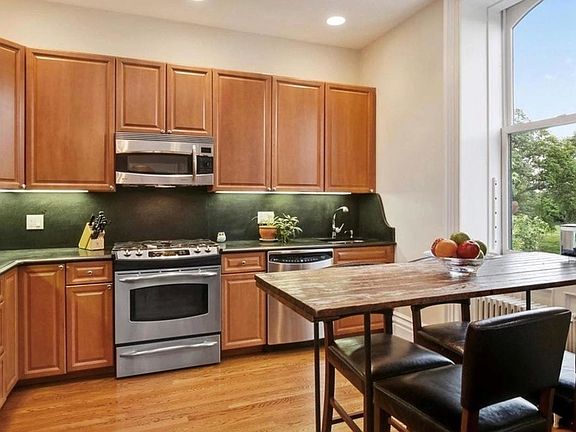 OPEN HOUSE IS BY ADVANCE CONFIRMED APPOINTMENT. This generous and bright two bedroom/two bath top floor apartment on gorgeous South Portland Avenue is a once in a lifetime rental opportunity. Voted the most beautiful block in Brooklyn, this extra-wide brownstone on South Portland sits diagonally across from Fort Greene Park and offers amazing views of the park. The 1100 sqft+ apartment benefits from a private full roof terrace (accessed via interior staircase), two large bedrooms, 10' ceilings, a comfortable open kitchen with high end appliances and Dishwasher, vented washer/dryer, and ample closet space. The bathrooms are well finished and clean, one has a deep soaking tub and pedestal sink. Located four flights up in a small 5 unit condo building, you will have peace of mind and buns of steel. The location can't be beat-live right next to the weekend farmer's market, tennis courts, playgrounds, and open space in Fort Greene Park, between all the restaurants and shops of DeKalb and Lafayette and Fulton, and a few blocks to the BAM cultural district, 15 minutes to Manhattan and extremely convenient to multiple subway lines (C,G, B M, Q R, 2, 3, 4, 5) and LIRR.