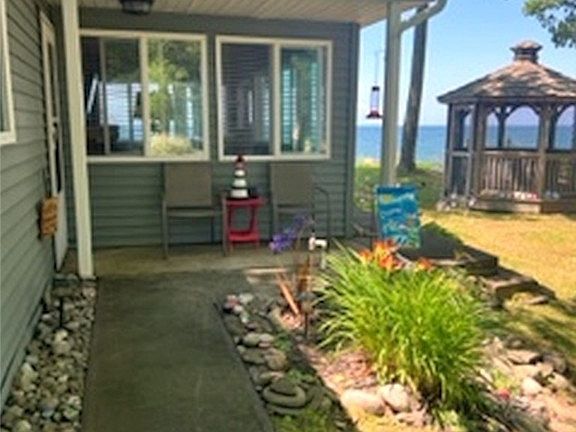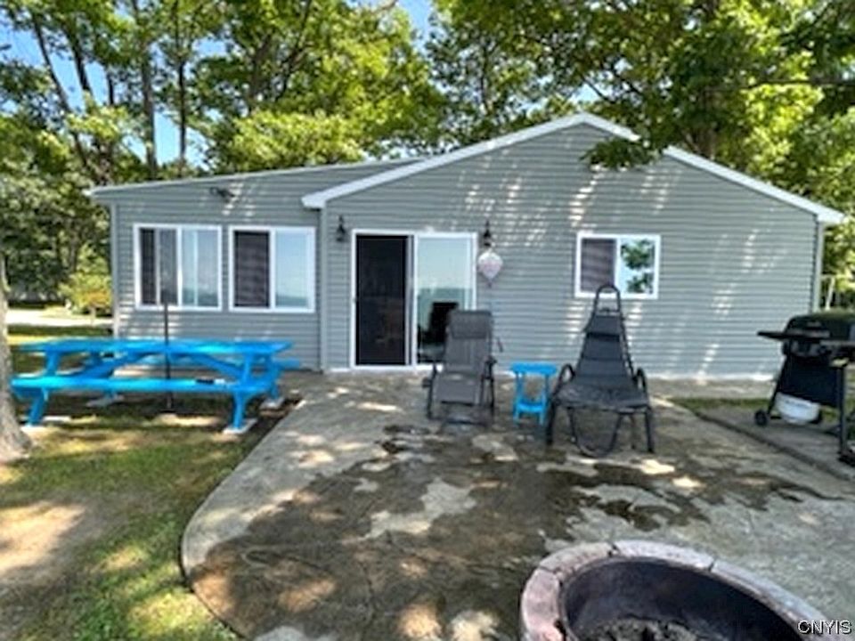 >> BEAUTIFUL SUNSETS AND FALL WEATHER AHEAD FOR YOU TO ENJOY AT YOUR NEW LAKESIDE RETREAT.  Beautiful Cottage was gutted and completely updated 10 years ago!!  Offering over 1200 sq ft, 3 Bedrooms, Living  & Dining area, plus fully enclosed Sunroom Porch.  Interior features Built-in Breakfast Bar, Pellet Stove in main living area, Separate entrance to Bath from Primary Bedroom, Pull-down Stairs to Attic crawlspace for extra storage and more!  Exterior features Firepit, Gazebo, Stamped Concrete Patio, Shed, and of course the Spectacular views with 84 feet Lake Ontario frontage!  Public drinking Water too!  Most furnishings will stay.  Break wall was recently Reset + rebuilt.