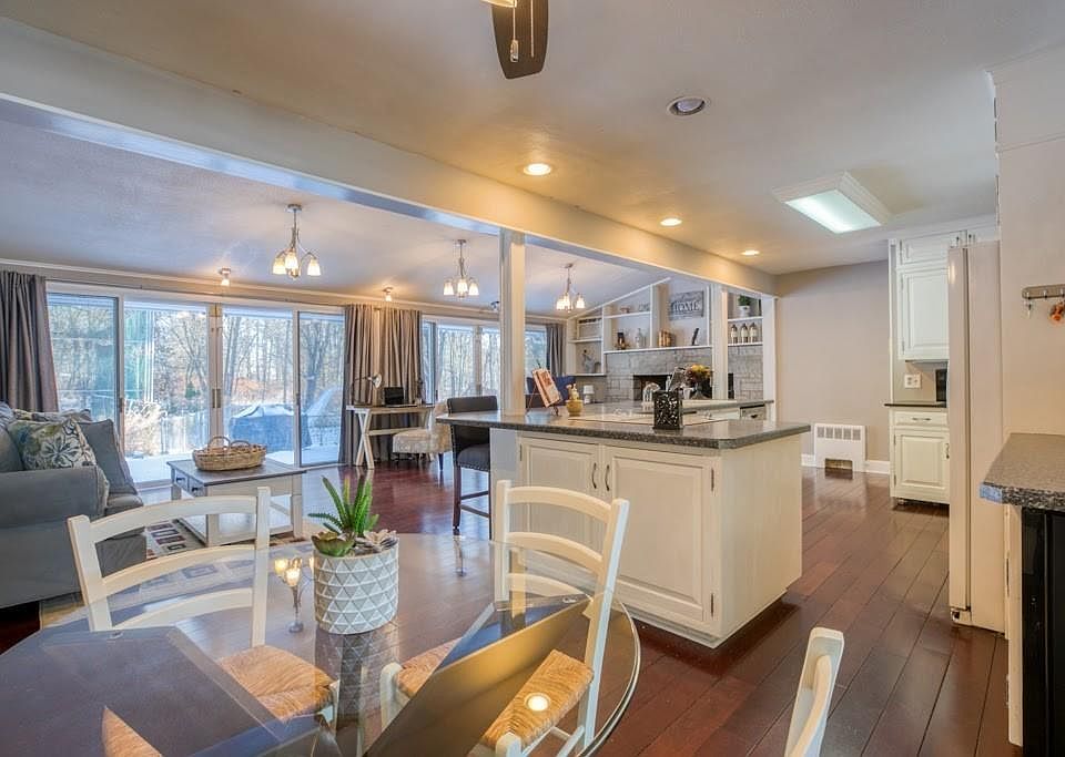 - Liv Dscrp: Exterior Access, Fireplace, Main Level, Open Floor Plan, Slider, Flooring - Wood