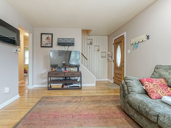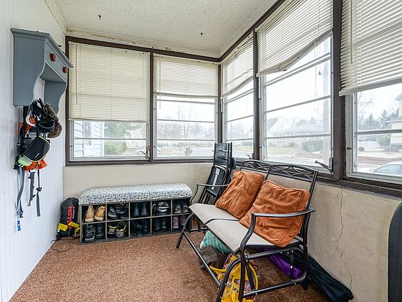 Charming and well-cared for cape home just waiting to become your next Home Sweet Home! Enter into the enclosed front porch/sun room area which serves as the PERFECT mud room or could easily accommodate some bench seating for a quiet reading nook or morning coffee spot. Continue into the living room and immediately the original hardwood floors catch your eye! Good news, they travel throughout the entire home, even upstairs! Living room offers huge bay window, neutral paint and is open into the spacious eat in kitchen. Kitchen is light and bright with oak cabinetry, neutral floors and counters accented by white appliances. Two spacious bedrooms are down the hall with hardwood floors and neutral paint. A full bathroom offers tile floors, charming wainscoting and corner shower. Separate laundry/utility room is located on this level as well! Upstairs, two bedrooms can be found. One currently being used as master suite has neutral paint, hardwood floors, recessed lighting and spacious closet. The other room is used as a family room and office but can provide potential for anything. A full bathroom is conveniently located upstairs as well and offers fresh paint, tile floors and relaxing bathtub/shower combo. Out back, yard is fully fenced. Patio space is just waiting for those summer bbqs and a shed provides any additional storage you may desire. Get ready to fall in love with this home! Ac/heat less then 4 yrs old and front bay window less than a year old! Just unpack and move right in!
