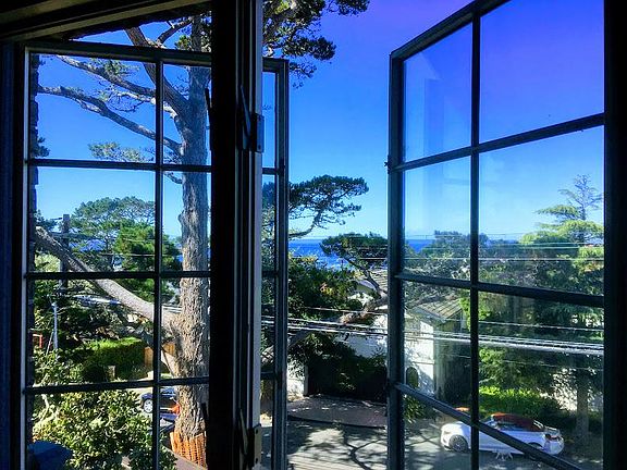 3 Story home in the Golden Rectangle in Carmel-by-the-Sea. Filtered ocean views and single car garage with off street parking. Camino Real near 8th. Short walk to village and beach. Central Vacuum, 4 balconies and 2 gas fireplaces. Utilities not included