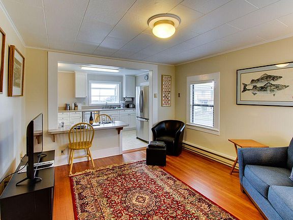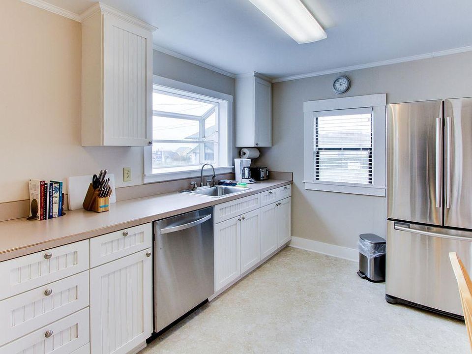 This pet-friendly Newport cottage offers a comfy atmosphere, ocean views, and immediate access to Nye Beach. Just a few blocks off Highway 101, this home is located right in the desirable Nye Beach neighborhood, where you'll find lots of shops and eateries. The oceanfront Don Davis Park is only two blocks away, and provides direct access to the beach via a paved trail. The updated interior of this adorable home is quaint and cozy, yet bright and airy, featuring the original hardwood floors from 1920 (though the home was newly remodeled in 2017!) The living area has a couch and a chair for lounging while you watch the flatscreen cable TV. Use the free WiFi to locate attractions and restaurants. Or stay in and cook up a scrumptious meal in the completely remodeled kitchen. With standard appliances, including a dishwasher, and plenty of cookware, meal prep and clean up will be a breeze. Savor a quiet dinner at the bar for two, which separates the kitchen from the living area, and listen to the peaceful sound of the ocean, visible through a kitchen window. With a queen-size bed and a futon, this two-bedroom, one-bath home sleeps up to three tenants. The master bedroom also features a wall of shelves, offering a wide selection of books. The bathroom has a standalone shower, and this home also offers a private full-size washer and dryer for your added convenience. Walk to the Newport Performing Arts Center and catch a show, or stroll to Don Davis State Park, and enjoy a picnic near the ocean. Browse the shops in Nye Beach, then take a break and refuel at one of the many quality restaurants in the area. With so many seafood restaurants around (and shops where you can buy the catch of the day and cook it up back in your rental's full kitchen), you'll have plenty of options. When it's time to get out and explore a little, head to Yaquina Bay State Recreation Site for some hiking and a tour of the lighthouse. Don't miss Newport's historic bayfront, the iconic aquarium and adjacent Hatfield Marine Science Center, and the picturesque Yaquina Head Lighthouse, either! Parking Notes: Off-street parking is available Water Access: Beach is available two blocks west via Don Davis Park. Utilities are icluded