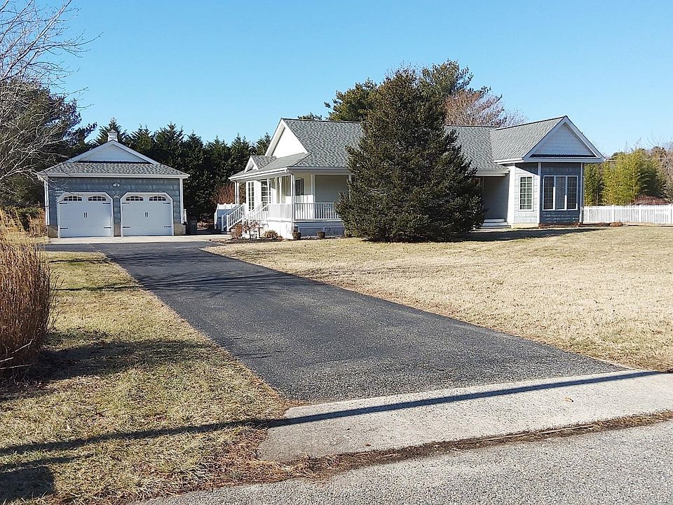 CAPE MAY COURT HOUSE, UNDER 10 MINUTES TO AREA BEACHES. Well maintained Rancher located in the desirable 08210 zip code with a Victorian style architecture! The large front entry foyer welcomes one with a double coat closet and leaded glass. Home features Hardwood Floors, Vaulted and Tray Ceilings with recessed lighting, a spacious Owner's Suite with a Walk-in Closet and Walk-in Shower. There are two other guest bedrooms that share a hall full bath. Front guest bedroom features a wall of windows. A spacious room off the kitchen that can be used as home office and/or a butler's pantry with Laundry Closet and a wash tub. The Family Room features a Gas Fireplace with a blower and is open to the Kitchen separated by a long Breakfast Bar. The kitchen is large enough to accommodate the serious cook with Granite Counters, Tiled Back Splash set on the diagonal and white cabinets. The spacious Dining Area off the kitchen has a bay style bump-out of windows to watch the wildlife and enjoy the morning sun. The formal living room is large enough to accommodate formal living and formal dining in addition to the kitchen dining area. There is a Deck of composite material that winds around from the front door, across the front and down the side. There is a paver stone walkway leading from the driveway to the front door. The detached Garage has a loft for additional storage and is serviced with electric. New roof was installed in 2019. There is also a water filtration system. Pride of ownership is reflected throughout the home. Utilities are underground, no unsightly utility poles or wires. Property is being Sold strictly AS IS. The Seller does not offer any warranty or guarantee on the functionality of the hot tub and the sprinkler system, which was winterized about 5 years previously.