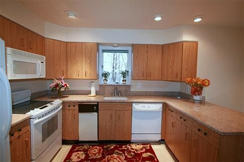 Beautiful Alden II, END UNIT with total privacy on all sides. EIK with Granite counters, updated appliances, recessed lighting & tile floor. Spacious LR/DR combo with loads of natural light, wood burning fireplace and sliders to deck, a great extension of the home and perfect for entertaining! A half Bath and foyer complete the main level. The MBR has new carpeting, walk-in closet and updated MBath with jetted tub and separate stall shower. The bright, sunny 2nd BR has new carpeting as well as an updated Bath complete with stall shower. For even more living space, this wonderful home features a finished basement with Family Room, Office, Laundry Room and an additional storage area. This is a Must See!