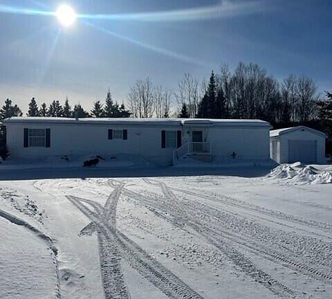 Move in Ready home on over an acre of land. This easy to heat property is well taken care of with a bedroom on each end of the home. An easy open concept, living room/dining room/kitchen. Insulated skirting keeps this home nice and cozy. Paved driveway was sealed 2022. Great over sized 1 car garage. Plenty of open land for a garden or room for outdoor entertaining. Located off the Main road on a quiet side street. Furnishings included!