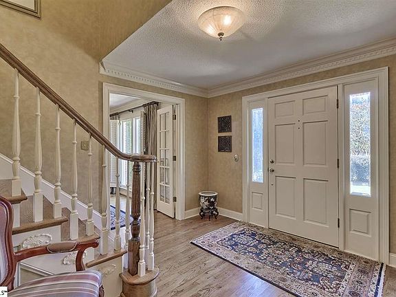 Immaculately kept brick home in perfect location on a CUL DE SAC close to 385/ 85/ and all the best shopping and ammenities! This sought after neighborhood has pool/ clubhouse/ basketball/ playground etc. The yard is gorgeous and out back is a terrific FLAGSTONE PATIO with rounded steps and stone walkway! When you enter, there is an oversized foyer, cozy den with fireplace, and a formal living room and dining room (currently used as an office) with 2 sets of FRENCH DOORS. The kitchen and breakfast area is well appointed and leads to a RELAXING SUN ROOM! There are PLANTATION SHUTTERS in the living room, dining room, and den. Other lovely details downstairs include STAINLESS appliances (oven has convection feature), GRANITE countertops, DENTIL moldings, CHAIR RAIL moldings, and WAINSCOTING in the dining room. Upstairs are master suite plus 3 bedrooms and a full bath with double sinks in the dressing area and a separate bathroom/ shower area with THIRD sink/ vanity. The bedrooms all have wonderful XL walk in closets and PICTURE RAIL mouldings! The master suite is ENORMOUS! It also has a multi purpose room off of it that leads to ANOTHER room with some extra walk in storage space. The upstairs hallway has TWO DEEP STORAGE CLOSETS plus another large linen closet in the hall bathroom. FYI, Both upstairs bathrooms just had the tile regrouted and resurfaced. All the carpets were also just cleaned by Stanley Steamer and a few rooms were freshly painted before listing. THIS HOME IS READY TO GO. **The price per square foot for this home is reallllly good!