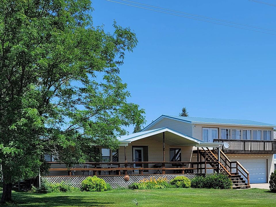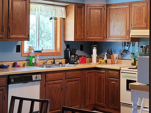 Walk to Sandy Beach! Partially furnished vintage manufactured 3-bedroom 2 bath home. Lovely kitchen has plenty of cupboard space and pantry with dishwasher, and electric stove. Underground sprinklers with large yard. Spacious carpeted living room with bay windows. Primary bedroom located on west side of home has walk in closet and linen closet and primary bathroom with double sinks and large bathtub with shower. There are 2 more bedrooms and a bathroom on main level. Spacious family room with deck.