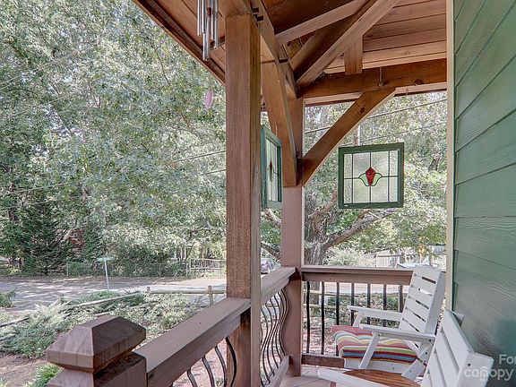 Amazing timber frame home with easy access to Lake Tomahawk, the Black Mountain golf course and downtown. Enjoy this richness of the wood beams and hardwood floors coupled with the modern upgrades throughout this lovely home. The kitchen includes high end appliances such as a wolf induction range, and a Fisher Paykel refrigerator and dishwasher. The great room includes a vaulted ceiling, ample windows and a gas Hearthstone stove. The primary bed/bath is on the main level with a second bedroom, a bathroom and loft on the second floor which could be converted to a third bedroom. This efficient home has an energy star certified heating system, a tankless gas hot water system and a whole house generator. The outside has been professionally landscaped and has a private fully fenced in back yard. Covered porches are on both the front and back of the house. This is a wonderful home with the convenience of being close to everything Black Mountain has to offer.