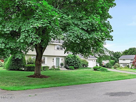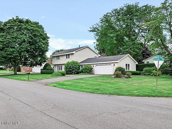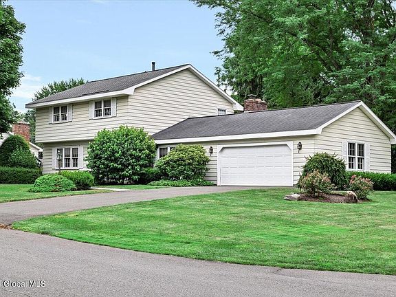 Thoughtfully maintained single owner Colonial situated on a landscaped corner lot in North Colonie School district is ready for a new owner! Below much of the carpeting, pristine hardwood floors will be revealed. Living room and dining room are brightly sunlit and perfect for entertaining and family space. Kitchen flows into the large family room w/beamed vaulted ceiling and sliding doors out to the deck and beautiful back yard. Generous primary suite and 3 additional bedrooms with ample closet space and additional full bath upstairs. Carpeted finished basement area and laundry room with space for storage and workbench. Attached 2 car garage with newly redone floor and recently redone driveway. Nothing to do but move in! Open House Sunday, August 18th 12-2pm.