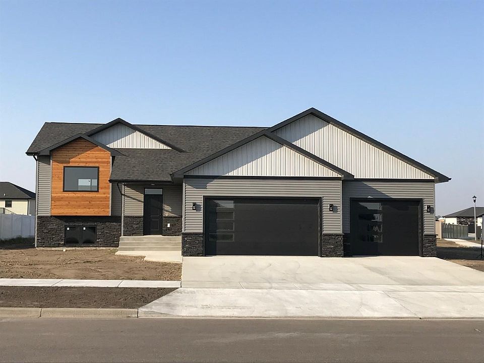 Here is your chance to own a modern, contemporary home in the Bluffs and close to the Minot Country Club. This home should be finished next month and includes 9'ceilings, granite kitchen counter tops, 3 stall garage, granite kitchen counters and a large corner lot. There are some finished to be completed such as driveway, flooring and a new front door. There is also a line run for the ability to heat the garage. listing agent is related to the seller.