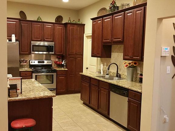 Well kept 4 bedroom home features soaring ceilings, custom kitchen with slab granite and stainless appliances, spacious master retreat with garden tub, separate shower and spacious walk-in-closet. Open living plan splits to the other two bedrooms and office. Upstairs bedroom is large enough to use as a bonus room. Outdoors offers a covered porch for relaxing and a fenced yard for the children.