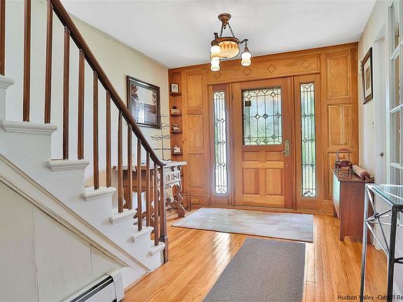 The Quintessential Farm House, this beautiful 4 bed 3 bath Farmhouse is looking for new owners! Originally a traditional four-square American Farmhouse, this darling was upgraded with a large addition. Upon entering through the front porch, you'll immediately see the love and care that this home has endured over the years. Hand crafted wood details adorn each and every room in the original house. Right away you'll be greeted by the formal "living room" with wood working fire place, perfect for chilly winter nights and entertaining friends. Head back into the den, flanked with sliding glass doors and adjacent deck, this oversized room is great for a media or play room as it sits right off the enormous chefs kitchen. This thoughtfully designed kitchen offers all you ever need. Plenty of space for your farm table, and all of your friends. Complete with six burner gas stove, wood cabinetry, stainless appliances and a tiny wood burning stove! Move seamlessly to the formal dining room or office, and don't miss the little hidden half bath! The functional flow of this farm house is impressive as it leads you up stairs where you'll find the most amazing master suite! This master bedroom offers a ton of space to spread out, and is completed by walk in closet and en suite bathroom. Need more? This house has it, three more bedrooms (one with fireplace) and full bath complete the second story of this home. Every room offers large windows making this home light and bright during the day. Head outside to find the 4 car garage and plenty of level yard to run and play. Located on quiet street this Farmhouse is the perfect escape, close to rt 300/NYS Thruway/Taconic and only 90 miles north of NYC!