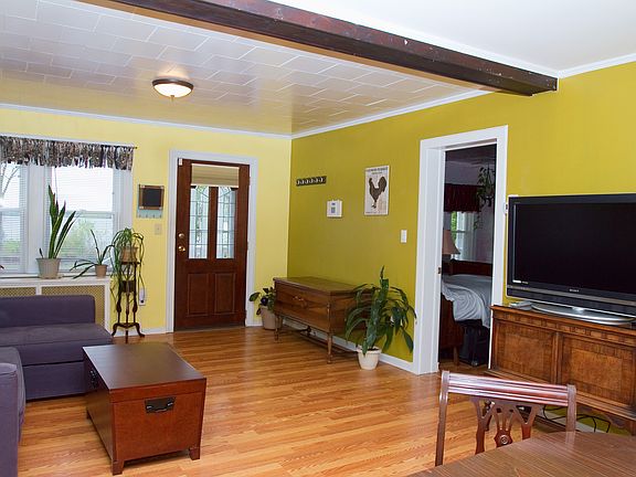 A RIVER VIEW at an affordable price! Great investment on fully furnished rental property. Positive cash flow and potential to increase. All systems in place to fully manage this vacation rental. This wonderful home with rocking chair front porch overlooks the Hudson River and has so much to offer. First level boasts a spacious and bright living room/dining room combination, a master suite, and a gourmet kitchen fit for a chef! Custom cabinetry w/ soft close feature, granite countertops, tile backsplash, oversized 36âEUR KitchenAid gas stove w/ griddle, range hood with heat lamps, built-in Thermador refrigerator, under-cabinet LED lighting, and radiant floor heat. Upstairs you will find 2 additional bedrooms and an updated bathroom along with plenty of attic storage space. Municipal services, 200 amp electrical service, & brand new spray foam insulation throughout for maximum efficiency. Vinyl siding, windows, furnace, and oil tank all new in 2010. Easy conversion to natural gas heat! Detached 1 car garage w/ attached shed is located behind house. Walking distance to all that Cornwall-on-Hudson has to offer!