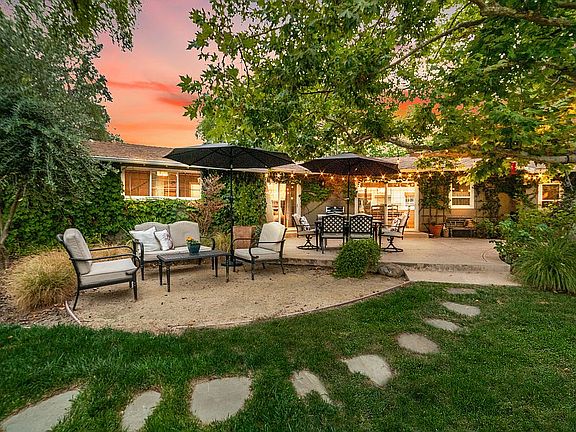 Custom single level home tucked away on private road in prestigious Westside Alamo. Over half an acre of flat premium lot, property has front yard w/charming front porch, lawn w/mature trees, bordered by 90 rows of French Clone Chardonnay vines. Backyard features expansive lawn & side yard, spacious patio, fire pit & backs to Iron Horse Trail. Open floor plan offers living room w/wood-burning fireplace & floor to ceiling windows, stunning hardwood floors, custom millwork & access to backyard from almost every room. Beautifully appointed kitchen offers stunning white cabinetry, Carrara marble counters/backsplash, DCS appliances, island & opens to dining area. Family room boasts incredible vaulted ceilings w/wood beams, gas fireplace & access to backyard. Home includes master retreat, bedrm w/ensuite, two more secondary bedrms & addl. wing w/in-law suite w/separate access, kitchenette, full bath & income potential. Walk to top-rated schools, Iron Horse Trail, hiking, shopp & restaurants.