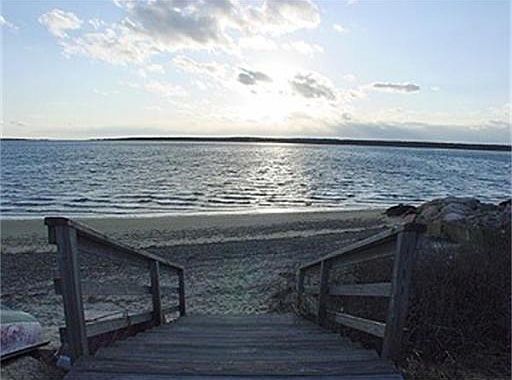 Water views of Waquoit Bay & steps to sand and sea from this like-new Beach House. Seaside chefs will the sun-splashed gourmet Jenn-Air kitchen with granite counter tops, owner's suite with tiled bath & dual-head shower, ceiling fans in each room, wide-plank flooring, & custom sound with speakers throughout. The spacious Great Room offers walls of glass, soaring cathedral ceilings & French Doors that open to a mahogany deck & the salt water views.