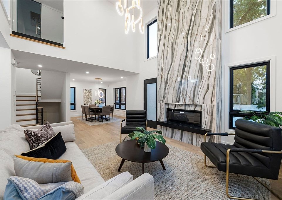 Experience luxury and sophistication in this brand-new, set-back, fossil-fuel-free Riverside townhome. Offering the privacy and spaciousness of a single-family home, this residence welcomes you with a stunning open-concept living, kitchen, and dining area featuring soaring 18-foot ceilings, white oak hardwoods, a marble-surround fireplace, smart-home features, abundant natural light, and direct access to multiple outdoor spaces and two-car parking. The high-end chef's kitchen boasts Fisher & Paykel appliances, chic soft-close cabinetry, and a striking waterfall quartz island. The principal suite spans the entire 3rd floor with a lavish ensuite and private roof deck. Two generous bedrooms, a full bath, and laundry complete the 2nd floor. The lower level offers versatile space, including a family room, bedroom, and full bath. A+ location near Central & Harvard Squares, Storrow Drive, and Downtown Boston