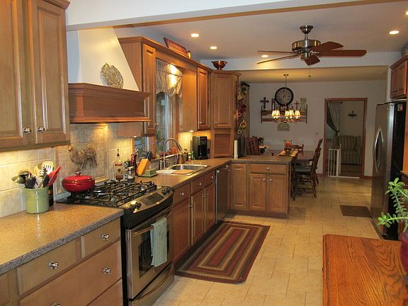 Country Charmer with large yard and awesome views of rolling fields, sliders off newer kitchen out to deck, hardwood floors, 17' X 14' master bedroom, detached garage, central air,...shows great.