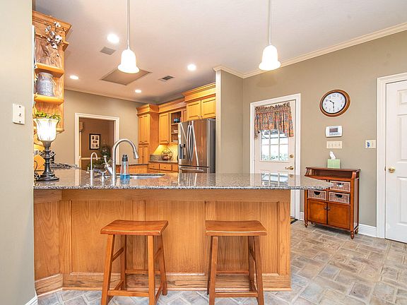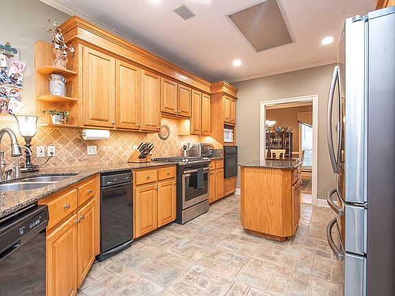 - Kitchen Features: Dishwasher, Disposal, Range, Built-in Oven, Work Island, Granite Counter Tops