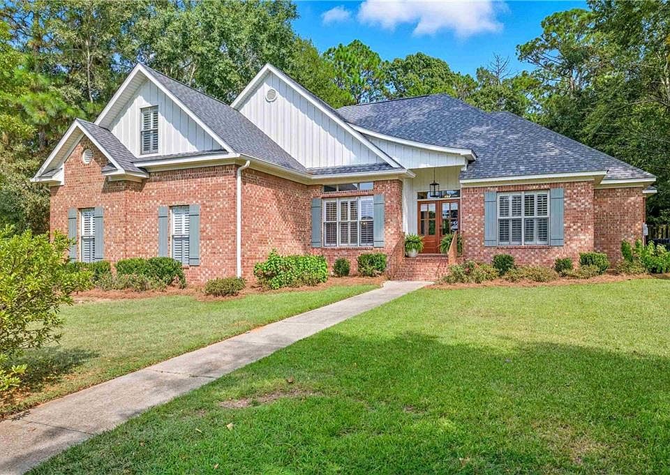 You'll think you walked into the pages of a decorating magazine with this 4/3 on main level plus bonus room up. Almost all 3219 square feet have been updated with new real hardwood flooring, remodeled kitchen with Quartz counters, new undermount sink fresh paint, new carpet and new mantel in greatroom. Rich in detail, enter through the foyer that opens to the dining room with wainscoting. The greatroom is the heart of this home and it's generously sized at 22x17. And fireplace and hearth with surrounding shiplap accent wall offers a dramatic touch to this living area. The kitchen has a gas range, island, subway tile blackspash and breakfast bar. Primary bedroom is also nicely sized at 16x15 with another accent wall. Ensuite bath has double vanities, large walk-in closet, jet tub, separate shower and water closet. Adjacent breakfast room has pantry and built-in desk and shelving. This split floorplan has a guest room with nearby bath and two bedrooms on the other side of the house have decorator touches with a jack-and-jill bath in between. Laundry room is near these two bedrooms. Upstairs is a large bonus room for your changing needs: playroom, office, hobby area. Off the back of the house is a screened porch for relaxing. Backyard is fenced. There's a side entry garage. New upstairs HVAC 2024; new roof 2024. Spanish Fort Estates has a voluntary HOA, restrictive covenants and in this section sidewalks and street lights. Enjoy the convenience of nearby schools, shopping, restaurants and commute to Mobile or elsewhere via I-10. Buyer to verify all information during due diligence.