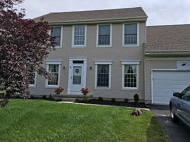 Center hall colonial with an open kitchen. full basement with poured concrete walls. Home is located across the street from the park, and is situated on a cul-de-sac. Large lot 3rd largest in the development. Newer heat and AC. Completely finished basement with wet bar, half bath and office. New tankless water heater (2023). New roof (2023).