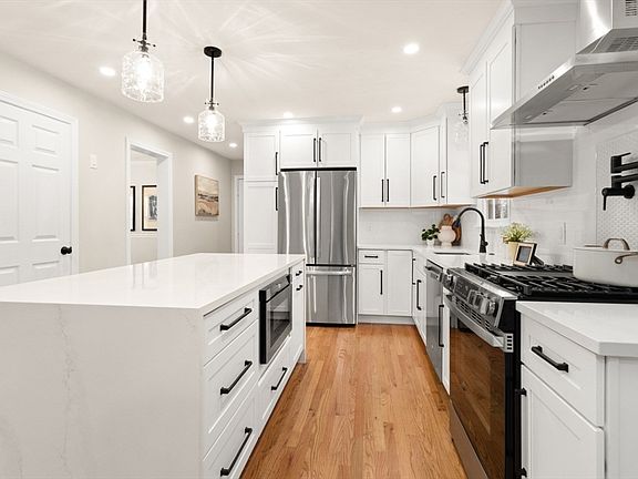 - Features: Flooring - Hardwood, Dining Area, Countertops - Stone/Granite/Solid, Kitchen Island, Open Floorplan, Recessed Lighting, Remodeled, Stainless Steel Appliances, Pot Filler Faucet, Lighting - Pendant