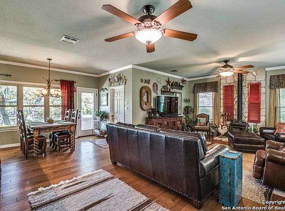Private gated home nestled in numerous oak trees. This beautiful 3400+ SQFT home is just the right place to call home and to entertain. Covered patio looks out to the well designed Keith Zars pool. The bonus "MAN'S Cave" is the ideal place to hangout and relax! Master plus secondary bedroom downstairs with 2 other bedrooms and 2 full bathrooms and game room upstairs. Spacious garage has separate room for storage/workout room. Barn has both water and electricity. Great location with NO city taxes!