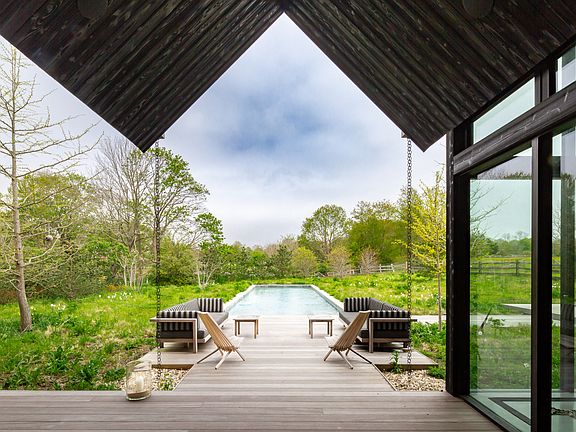 Experience hotel-like chic living with plenty of privacy in this very impressive and stylish modern. Offering all the amenities for an enjoyable Hamptons summer there are three outdoor lounge areas, pool, two outdoor showers, and outdoor sound system for those long summer nights. The walls of glass allow for views of the sprawling horse farm and 16-acre reserve. The stunning home features polished concrete radiant floors throughout with split wings for the primary ensuite and the guest wing. Only moments from East Hampton Village Ocean beaches, shopping, restaurants, and entertainment.