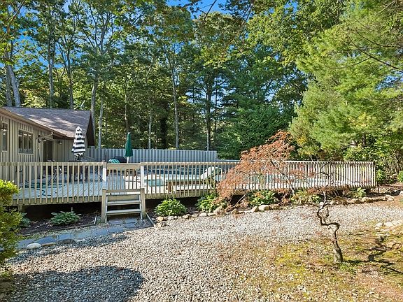 At the end of a cul de sac is this charming 3 bedroom, 3 bathroom home with fenced pool and fenced yard. Enjoy easy living on 1 floor. Located in the desirable Settler's Landing area of East Hampton, the private bay beach is just around the corner. Sammy's Beach is a mile away, and the towns of East Hampton and Sag Harbor are a short drive away. Light streams in through skylights and bay windows into an open concept kitchen, living room and dining room. There are two primary bedrooms, each with king sized bed and renovated en-suite bathroom. A third bedroom offers two twin beds or one king bed, with a hall bathroom. The sunny home office opens through sliding glass doors onto the deck and, on the other side, French doors into the living room. There is a huge deck and pool for summer fun! The house and deck have been freshly painted, new roof with solar panels, and CCS EV charger added ...Dogs allowed.