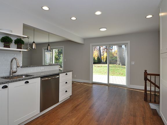 Much larger than it looks from the outside. Beautiful level back yard with 2 stone patios. Fully renovated home located on quiet cul de sac just a few short blocks from Downtown Madison and Midtown Direct Train. High end upgrades throughout, and plenty of living space abound in this 4 bedroom 3 full bath home. Brand new: Eat in kitchen with breakfast bar, granite countertops, stainless steel appliances and hardwood floor; 3 full baths; recreation room; windows and doors; central air conditioning; hot water heater; recessed lighting throughout; electric panel; 2 back patios and retaining walls; front steps; garage door; landscaping. Newer: furnace and roof. All hardwood floors have been beautifully refinished and a new hardwood floor has been installed in the Family Room. This home is .4 miles from the Madison Train Station, and is walkable to downtown shops and restaurants, yet tucked away on a quiet cul de sac.