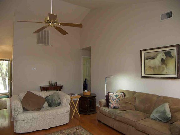Nice starter home with many UPDATES & a GARAGE! Sharp hardwoods in foyer and greatroom. Eat-in kitchen with stained wood cabinets. Greatroom with soaring vaulted ceiling. Three bedrooms and two baths. Master bedroom offers a walk-in closet and private bath with dual vanities and tub/shower combo. Nice curb appeal for this low maintenance vinyl clad home. Inviting, fenced backyard with nice shade trees and ample room to roam and play.