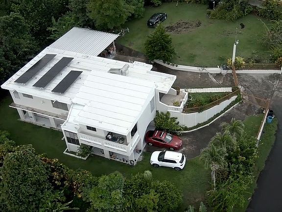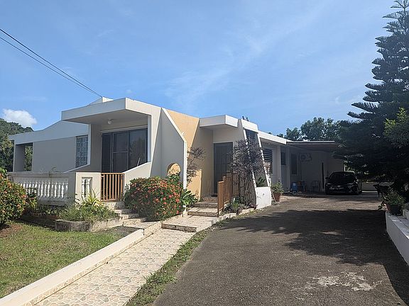 This property sits on a hill with a beautiful view of the mountains. It has two living areas. The main level has a high ceiling, a living room, a dining room, a large kitchen, two balconies, three bedrooms, and two bathrooms. There is also an interior staircase that leads to the lower level. It leads to the garage area below. The lower level of this house has a living area with a bedroom, a bathroom, a living room/kitchen, all of which are served by the same water and electricity meter. It has a fully paid off solar system that provides partial back for important loads during power outages and greatly reduces power bill. This property also has a septic tank. Danosa waterproof Bitumen Membrane on concrete roof. This property combines modern convenience with breathtaking natural surroundings—making it a rare find.