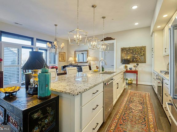 Accepting backup offers: Current buyer has a home sale contingency. Experience refined, single-level living in Historic Downtown Leesburg’s premier King Street Station. This elegant condo offers 1,742 square feet of modern luxury in a low-maintenance, boutique setting. The open-concept kitchen, dining, and living area is bathed in natural light, with 10-foot ceilings, tall windows, and stunning engineered hardwood floors. A striking stone fireplace with built-in shelving serves as a cozy focal point, blending warmth with contemporary style. This home includes high-end finishes, plantation shutters, a full in-unit washer and dryer, and the convenience of an assigned garage space steps from your door. Nestled along the W&OD Trail, King Street Station boasts beautifully landscaped grounds with a neighborhood pavilion, plaza, lawns, and terraces. Just a short walk brings you to GooseCup Coffee, local shops, fine dining, and all of Leesburg’s historic attractions. With easy access to commuter routes and Dulles Airport, this residence offers the perfect blend of charm, luxury, and convenience in a sought-after location.