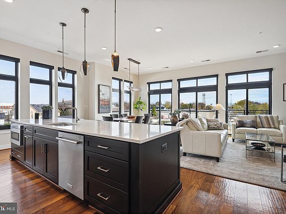 Stunning 2 bedroom, 2 bath top floor corner unit condo in the heart of historic Leesburg, built in 2020! This modern, bright and spacious residence features floor-to-ceiling windows with luxury automatic blinds and 10-foot ceilings throughout. A stylish kitchen with quartz counters, stainless steel appliances and a large island flows seamlessly to an open dining room and living room with a gas fireplace and built-ins. Sliding glass doors lead to a private terrrace with a retractable awning. The primary bedroom offers a walk-in closet and luxurious ensuite bathroom, and a second bedroom and bath are just down the hall. Abundant storage, an in-unit laundry room and a private 1-car garage and elevator access add practical touches to this property. Enjoy easy access to major commuter routes and Dulles International Airport, all while being perfectly situated along the W&OD Trail and just steps away from shops, restaurants and downtown Leesburg attractions!