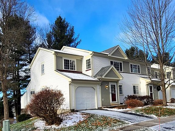 Offering a bright End Unit in Essex’s exclusive Steeplebush condos! This home has an amazing amount of space with a large open floor plan combining the kitchen, living, and dining, ample natural light w an 8’ x 5’ oversized slider window. The kitchen offers stainless steel appliances: a GE gas stove and microwave, Samsung side-by-side refrigerator, and Bosch dishwasher. There is a bonus den space off the living room, flexible for use, w a convenient 1/2 bath, and a large patio door gifting more natural light, leading to a private, off-ground 10 x 11 deck w remote awning. Make your way to the 2nd floor, w updated, gleaming hardwoods floors in the hall and all 3 rooms. There is a 2nd bedroom, a 3rd room that can be used as an office or playroom, a laundry area w newer W/D off the hallway, and a full bathroom with tub.  Enter the massive master bedroom suite offers 2 separate closets spaces, 1 is custom, and a large master bathroom with ample natural light, and walk-in shower. The lower-level walkout egress basement w new boiler, is plumbed for full bath with approx. 855 sq ft to create a full or partial finished space. It has another large patio door walking out to a back yard and a full 4’ x 5’ slider window for generous natural light! This condo has a 1 car attached garage with auto opener, alarm system available, a neighborhood tennis court, and rented garden space nearby. The location is close to Indian Brook reservoir, ample sidewalks, shopping, restaurants, movies & more!