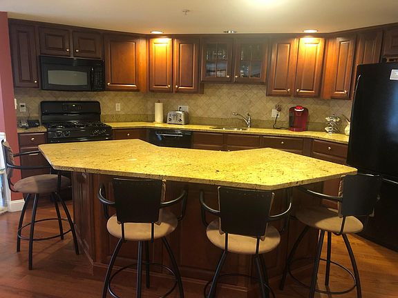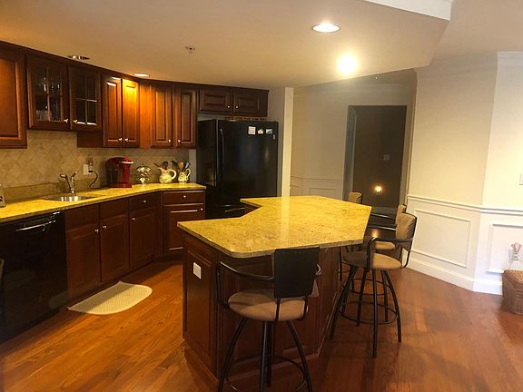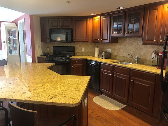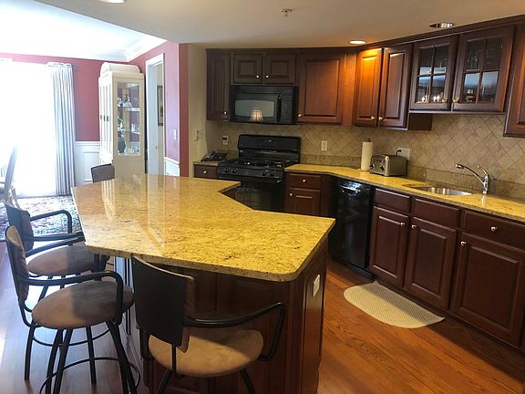 Beautiful, 55+ condominium. Many updates including all hardwood and tile flooring, extra wide moldings, built-ins in living room, dining room and second bedroom, and wainscotting in the living room. This is a highly sought after FIRST FLOOR unit in the REAR of the building with access to the rear yard. Kitchen has a large center island, granite counters and backsplash. Spacious living room with gas fireplace and access to the deck. Dining room is also spacious and will fit table w six to ten chairs, as well as a hutch. Primary bedroom with en-suite bath that is equipped with grab bars and double sinks. Second bedroom also has an en-suite bath including shower, whirlpool tub and double vanity. There is also a den/study/ office. The community has a pleasant secure entry and an elevator to go to the garage below. There is a storage unit in the garage. Nice clubhouse with a variety of activities, year round and a fitness room. One of the larger floorplans in the building. Furnishings negotiable. Pets under 30lbs permitted but must be approved prior to move in. Showings begin Saturday 8/6 10:30 to 12:00 and Sunday 8/7 11:00 to 1:00pm