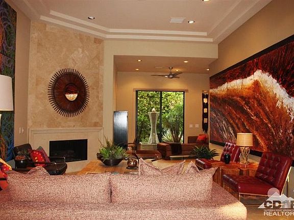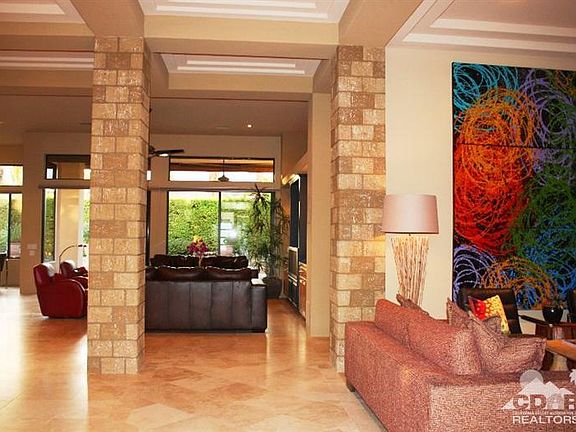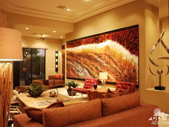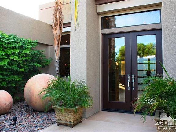 Sterling Cove is a very private gated community in Rancho Mirage. This home has dramatic high ceilings with walls of glass over looking a spectacular back yard with pool and spa. It has a very open floor plan that lends itself to entertaining small or very large parties. The entry opens to a large living room, dining area, kitchen and an intimate den with a massive fireplace all flowing perfectly. The home has had extensive interior refinishing with beautifully selected materials to show like a model. The kitchen includes an island and top of the line appliances to satisfy any gourmet cook. Don't miss seeing this home. This home was built by John Turnock.