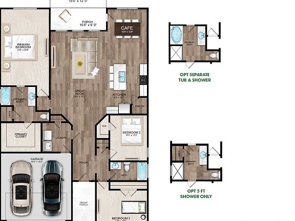 - Double Vanity, Kitchen Island, Main Level Primary, Pantry, Pull Down Attic Stairs, Separate Shower, Vaulted Ceiling(s)